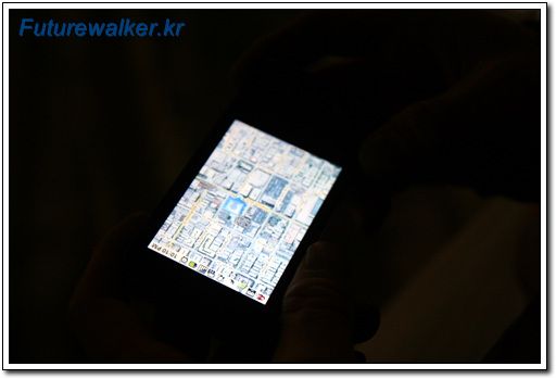 그림은 저녁에 서비스 가입을 마치고 길거리에서 Google Map에서 현재 위치를 인식하는 모습입니다.