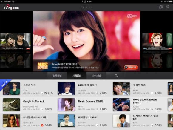 TVing 앱을 설치해써보고 처음 느낀 점은 일단 "음 꽤 쓸만한데~"였다. 사실 아이패드에 유명한 ABCPlayer나 Netflix를 설치해보면 국내에서는 판권문제로 컨텐츠를 볼 수 없기때문에 그림의 떡이라서 진정한 "비디오 서비스"를 느껴보지는 못했다. 하지만 TVing 앱을 써보고 느낀 점은 "이제 집에서는 DMB 볼 필요는 없겠구만"이었다. 물론 WiFi에서나 쓸만하지 3G에서는 써보시는 분들 아시겠지만 비추다. 즉 집에서만 쓰시는게 정신 건강에 유익하다. 이제 내가 생각하는 몇 가지 의미 있는 점과 아쉬운 점을 나열해본다.