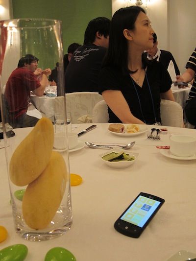 재미있는 건 아직 윈폰7이 탑재된 제품이 출시되지 않았기때문에 기존에 출시된 LG에서 출시된 윈폰7을 각 테이블위에 놓아두었는데 정작 "망고"가 탑재된 제품은 아니였다. 열심히 찍고 만지고 해보는데 "망고" 버전이 아니였다는~..