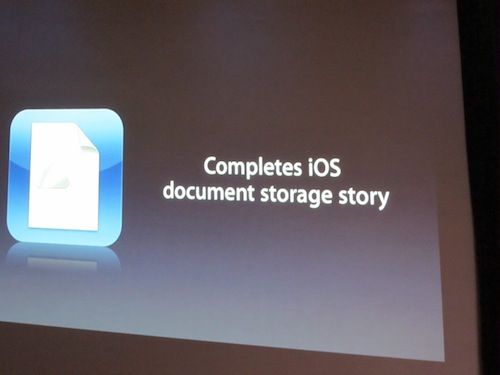 결국 그들의 맥 전용 오피스 소프트웨어를 위한 웹 하드 기능을 제공하는 것이다. 그나마 의미있는 건 그걸 API로 개방해서 3rd Party가 쓸 수 있도록 한다는 내용이다. MS의 Office 365가 하고 있는 것이고, 구글의 Docs가 하고 있는 모습들이다. 차이점이라면 애플의 iWorks가 뛰어난 오피스 소프트웨어라는 점이지만 어쨋든 맥 전용일뿐이다. PC 사용자 입장에서는 전혀 도움이 되지 않는 내용이다. 스티브 잡스가 얘기하는 "하늘의 드라이브"의 하나의 응용일 뿐이다.